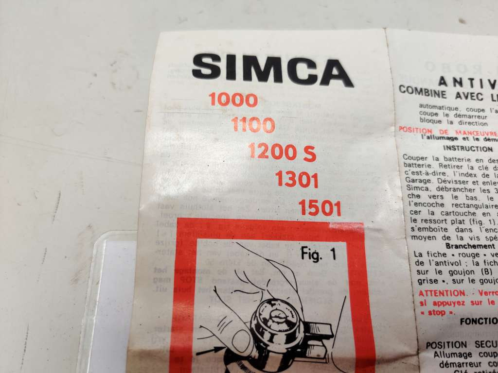 BLOCCHETTO ACCENSIONE ANTIFURTO NEIMAN 014410 SIMCA 1000 1100 1200 S 1301 1501 (VA1881)