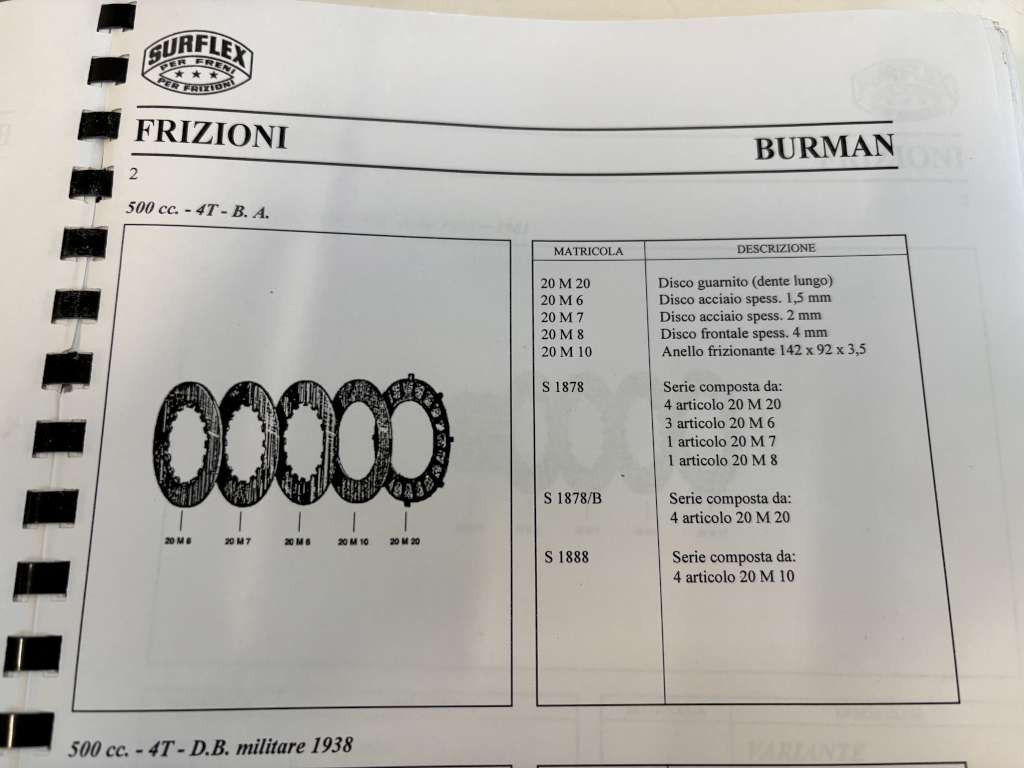 BURMAN 500 BSA 500 GILERA SATURNO CODICE 20M7