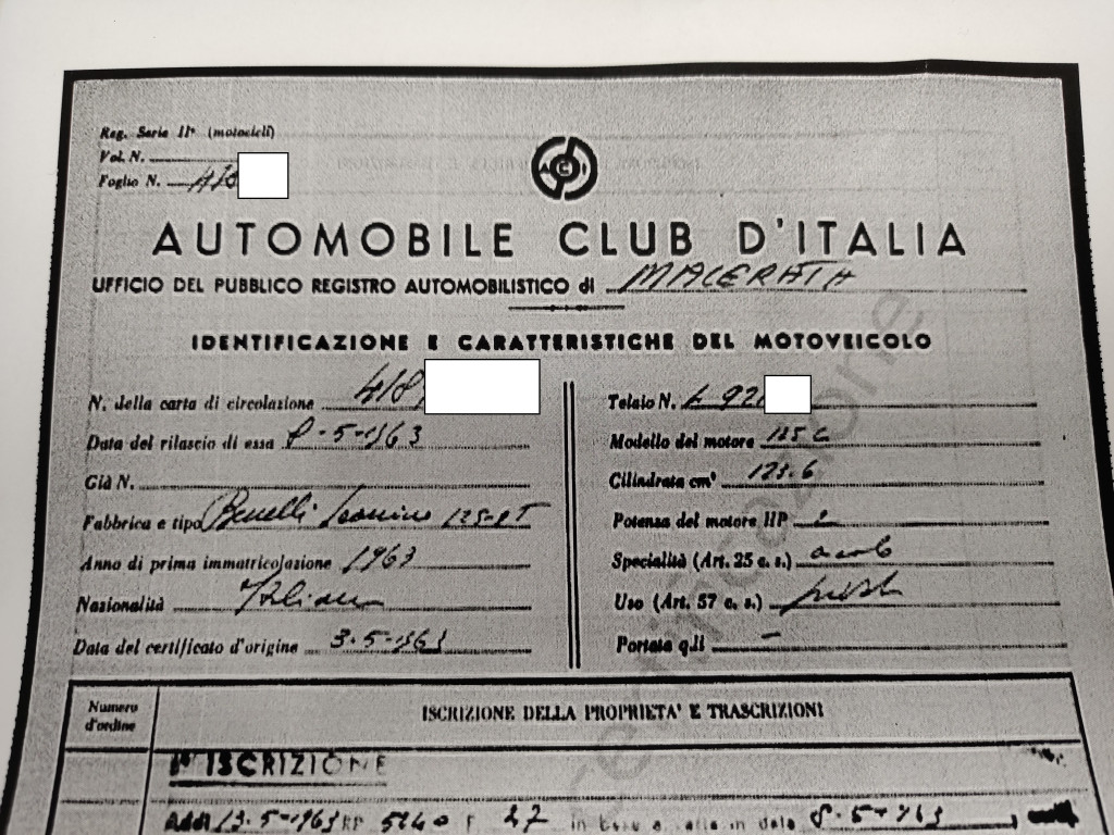 TELAIO CON TARGA (RADIATO UFFICIO) BENELLI LEONCINO 125 cc 2T SPORT 1954 (VA2522)